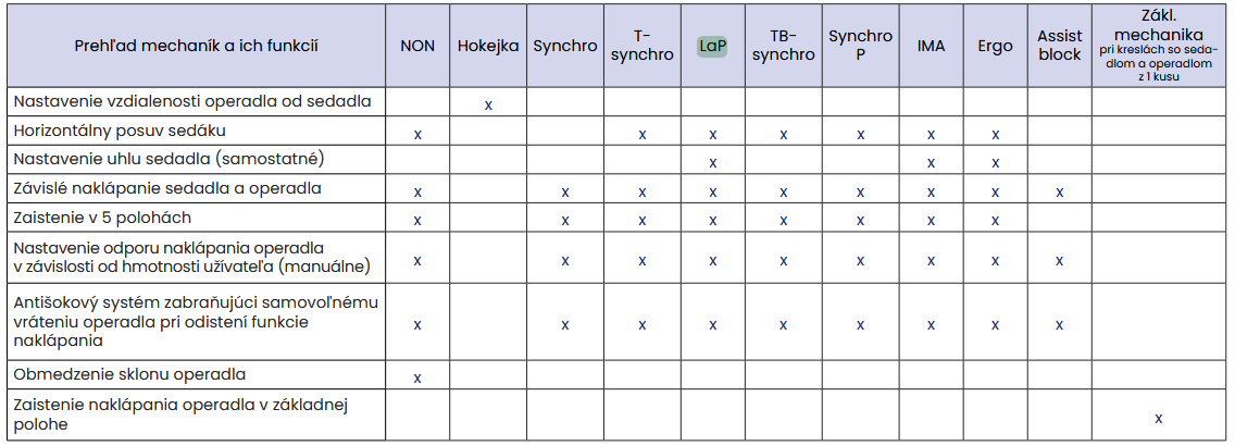 PREHĽAD MECHANÍK stoličiek ALBA