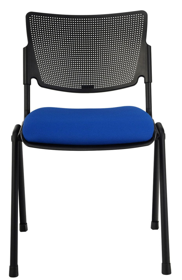 Praktická stohovateľná konferenčná stolička MIA ČALÚNENÁ PLAST v prevedení s plastovým sedadlom v trendových farbách a čalúneným sedadlom v poťahu zo vzorkovníka.