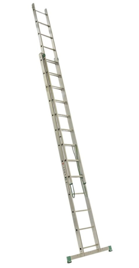 Dvojdielny univerzálny rebrík Eurostyl, počet priečok 2 x 14, max. výsuvná dĺžka 6,83 m a šírka 397 mm.