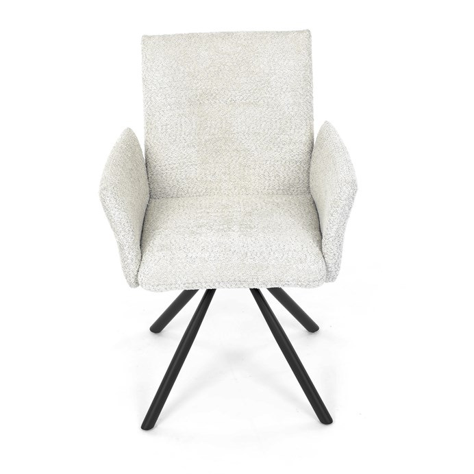 Tato moderní jídelní židle značky Autronic v industriálním stylu kombinuje pohodlí s funkčností. Otočná židle s robustní kovovou podnoží je vybavena pohodlnými područkami a látkou Bouclé, která zajišťuje příjemný a stylový vzhled. Polstrování z PU pěny nabízí měkké sezení, zatímco otočný mechanismus L90°/P90° s funkcí automatického vracení sedáku do základní polohy umožňuje snadné otáčení pro maximální flexibilitu. Černá kovová centrální podnož dodává židli stabilitu a moderní vzhled. Tato židle je ideální pro elegantní jídelny, kde se kombinuje komfort s moderním designem.