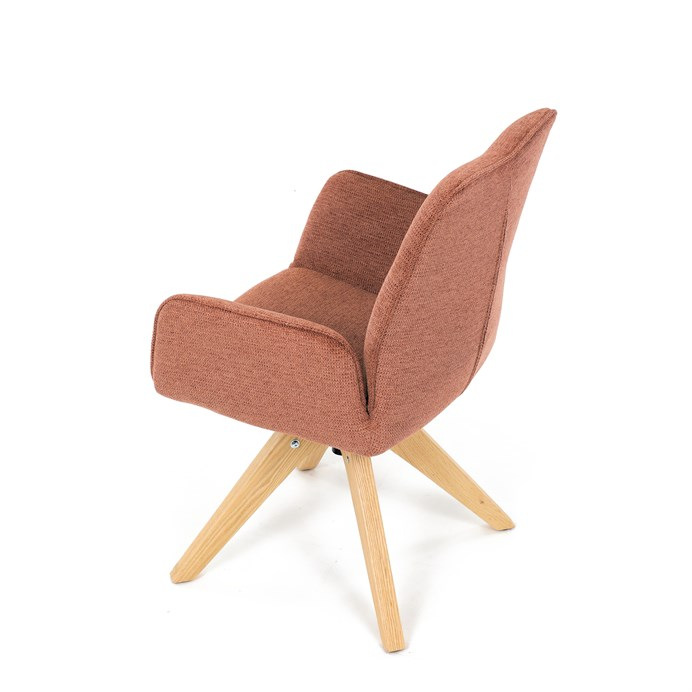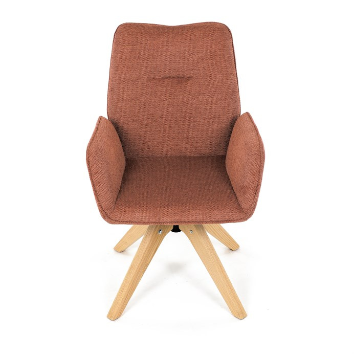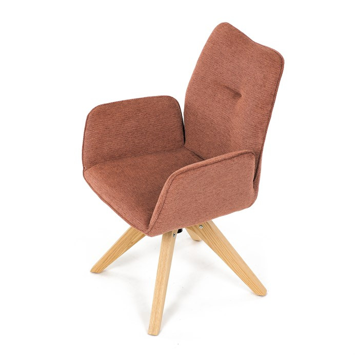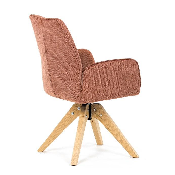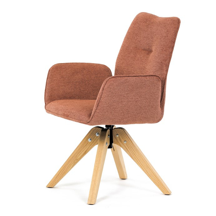 Stylová jídelní židle značky Autronic v moderním designu, která kombinuje komfort a eleganci. Její pohodlný sedák i opěrák jsou čalouněny voděodolnou látkou v příjemném oranžovém odstínu, což z ní činí skvělý doplněk do jakéhokoliv interiéru. Masivní dřevěné nohy v přírodní barvě dodávají židli stabilitu a odolnost, zatímco otočný mechanismus s funkcí 360° přináší uživatelský komfort. Tato jídelní židle je ideální nejen do domácností, ale také do kaváren či restaurací, kde je požadován moderní a funkční nábytek.