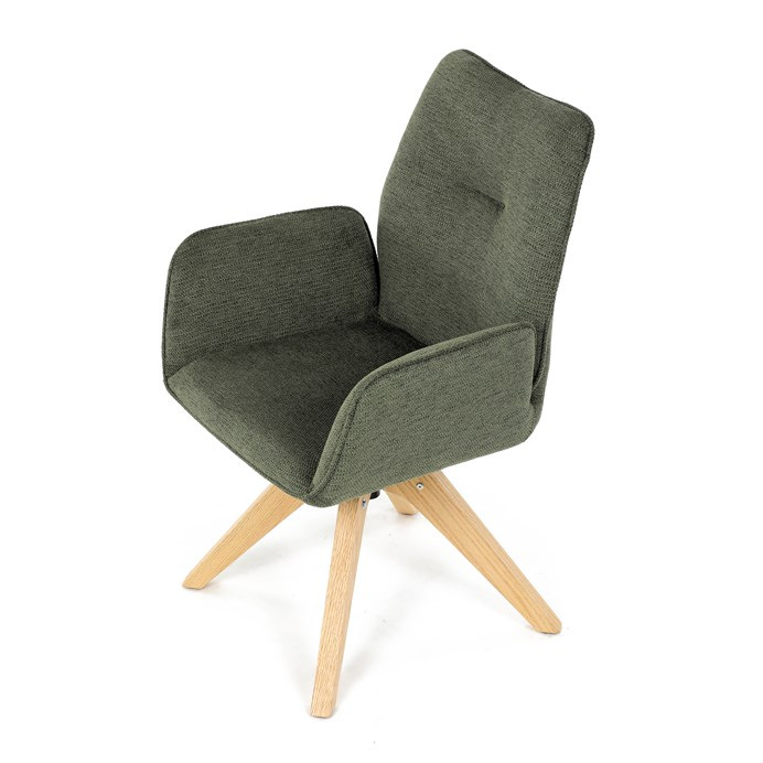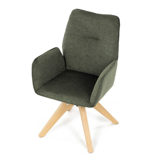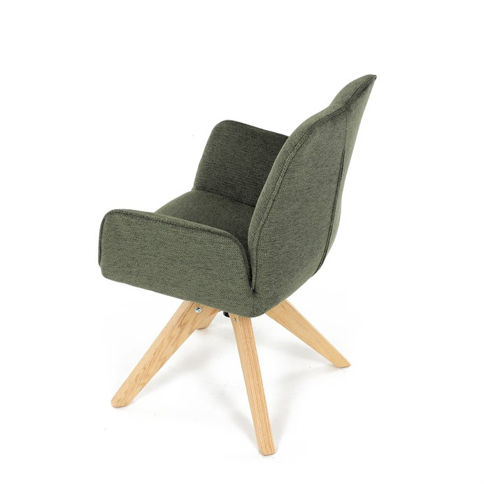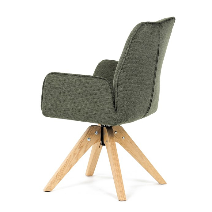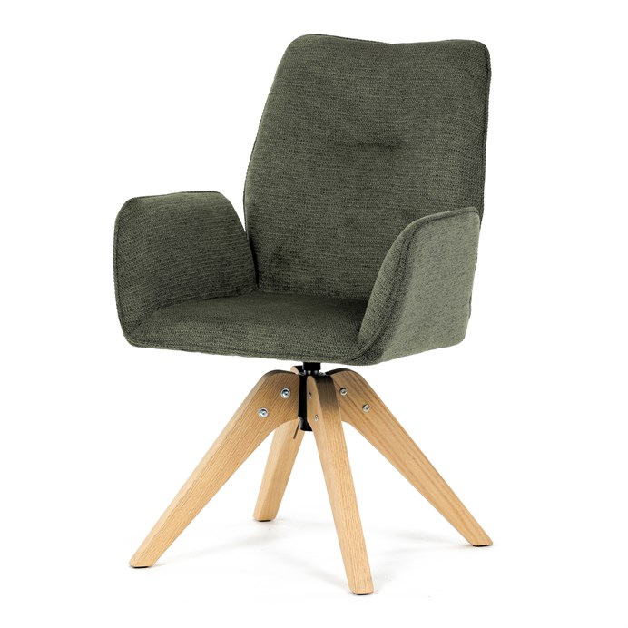 Stylová jídelní židle značky Autronic v moderním designu, která kombinuje komfort a eleganci. Její pohodlný sedák i opěrák jsou čalouněny voděodolnou látkou v příjemném zeleném odstínu, což z ní činí skvělý doplněk do jakéhokoliv interiéru. Masivní dřevěné nohy v přírodní barvě dodávají židli stabilitu a odolnost, zatímco otočný mechanismus s funkcí 360° přináší uživatelský komfort. Tato jídelní židle je ideální nejen do domácností, ale také do kaváren či restaurací, kde je požadován moderní a funkční nábytek.