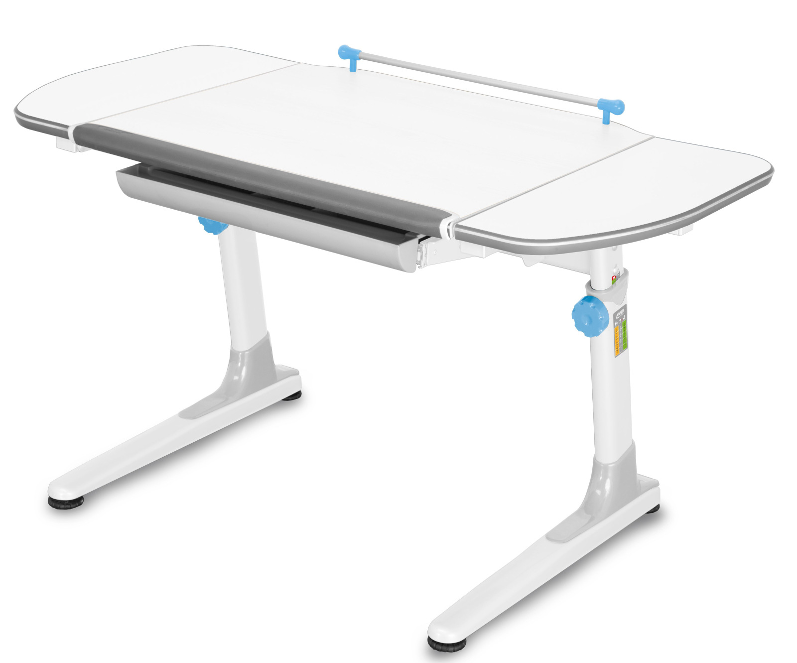 Doska o rozmere 116 × 66 cm, so strednou naklápacou časťou ovládanou madlom, podporená bezpečnostným pístom, pre ergonomické pracovné polohy. Bočné pevné dosky ponúkajú extra miesto na učebnice, pohár alebo lampu .