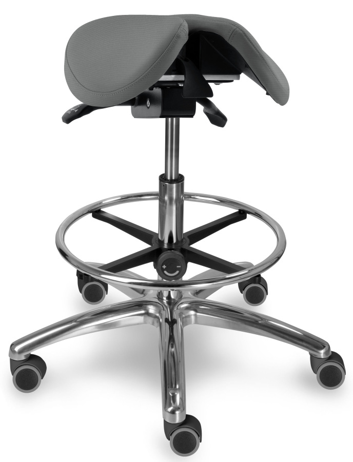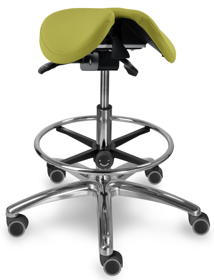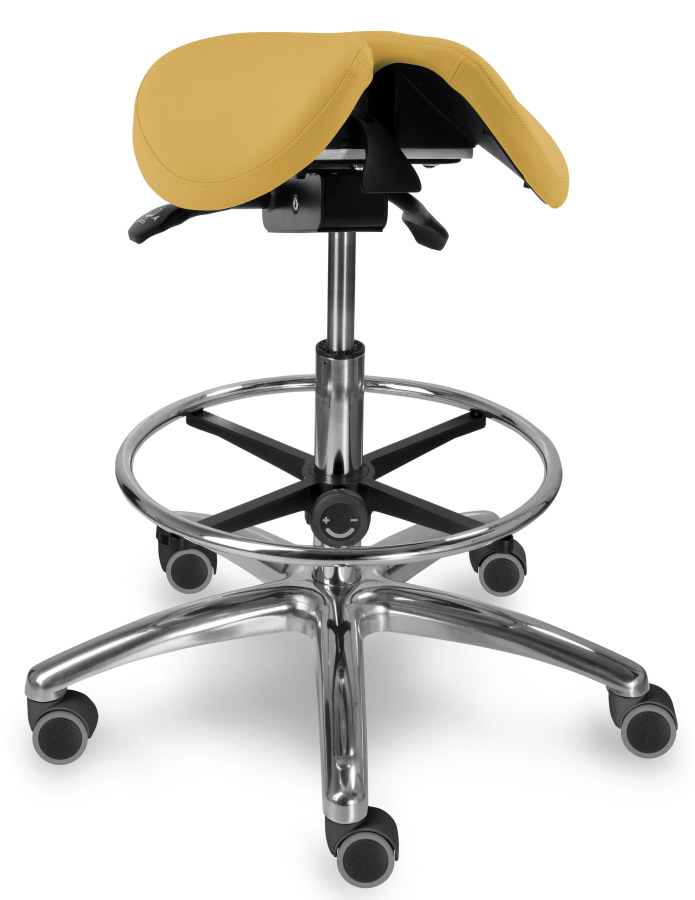 Možným doplnkom je opora nôh pre pohodlnejšie sedenie - Kruh na nohy je výškovo nastaviteľný nezávisle na výške sedu (verzia DENT).