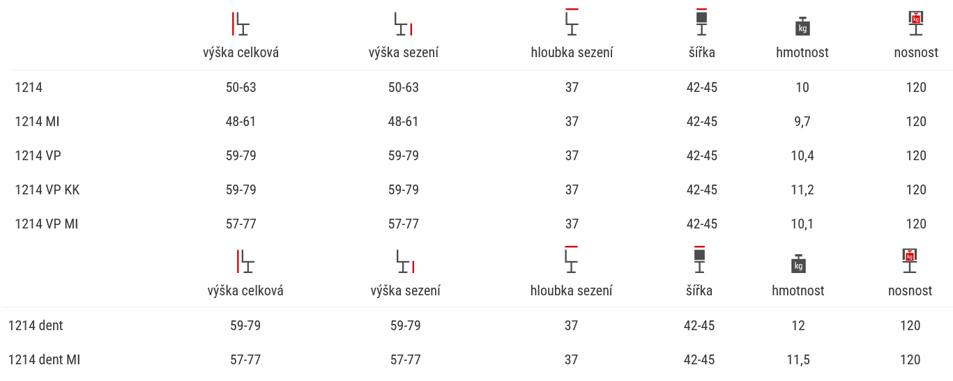 • výška opory nôh (model Dent – nezávisle od sedáku)