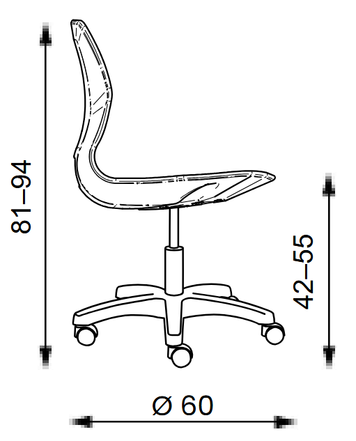 Stolička DAMIAN je dostupná vo veľkostiach 2–3 a 5–6, a to vo variantoch so štyrmi nohami, bocianou nohou alebo krížovou základňou.