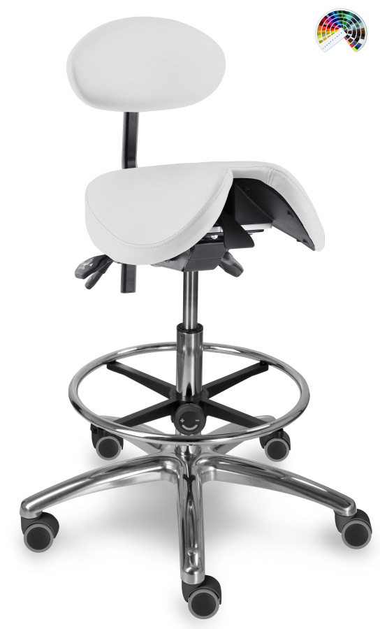 Sedlová židle 1215 S DENT s opěrkou je ideálním řešením pro profesionály, kteří potřebují maximální pohodlí, oporu zad a stabilitu při dlouhodobém sezení.