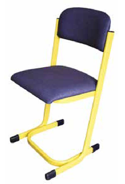 Sedák i opěradlo jsou čalouněny odolným potahem, který zvyšuje komfort při dlouhodobém sezení a zároveň je vhodný pro intenzivní používání ve školách. Stabilní ocelová konstrukce z plochých oválných profilů zajišťuje vysokou pevnost a dlouhou životnost i při každodenním zatížení.